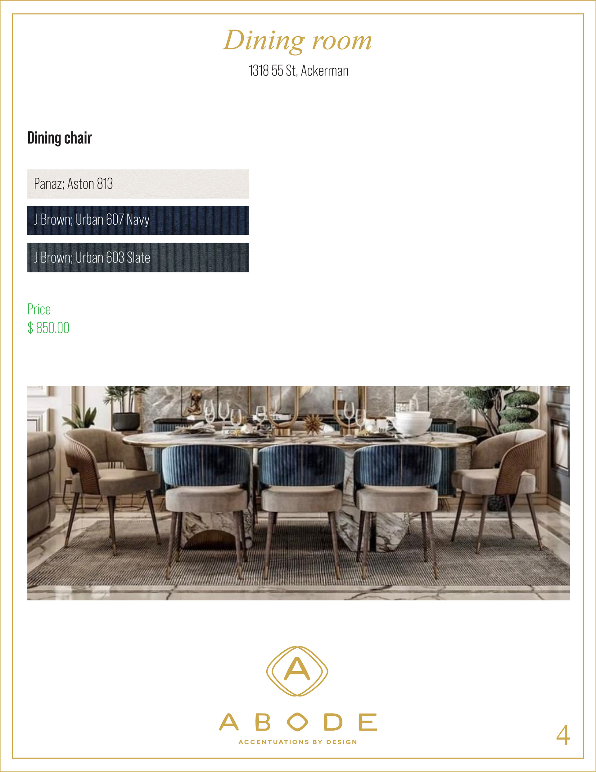 After working with the clients at the showroom, they receive a proposal which contains the products and finishes they love and its respective price.